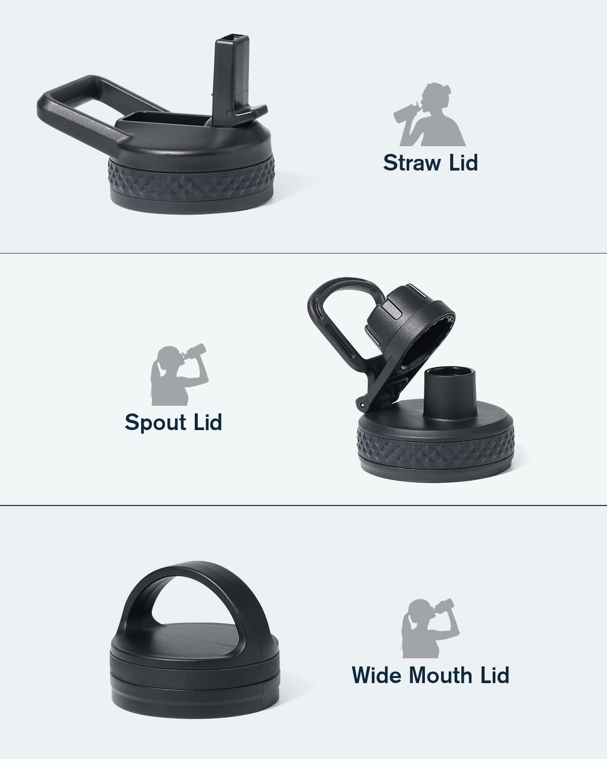 【3 Lids for Different Needs】Our 128 oz water bottle included a straw lid, a spout lid, and a wide mouth handle lid. The straw comes in with a spare in case one is lost and can be cleaned with the brush. They do not contain BPA and 100% leakproof. You can use them with confidence.