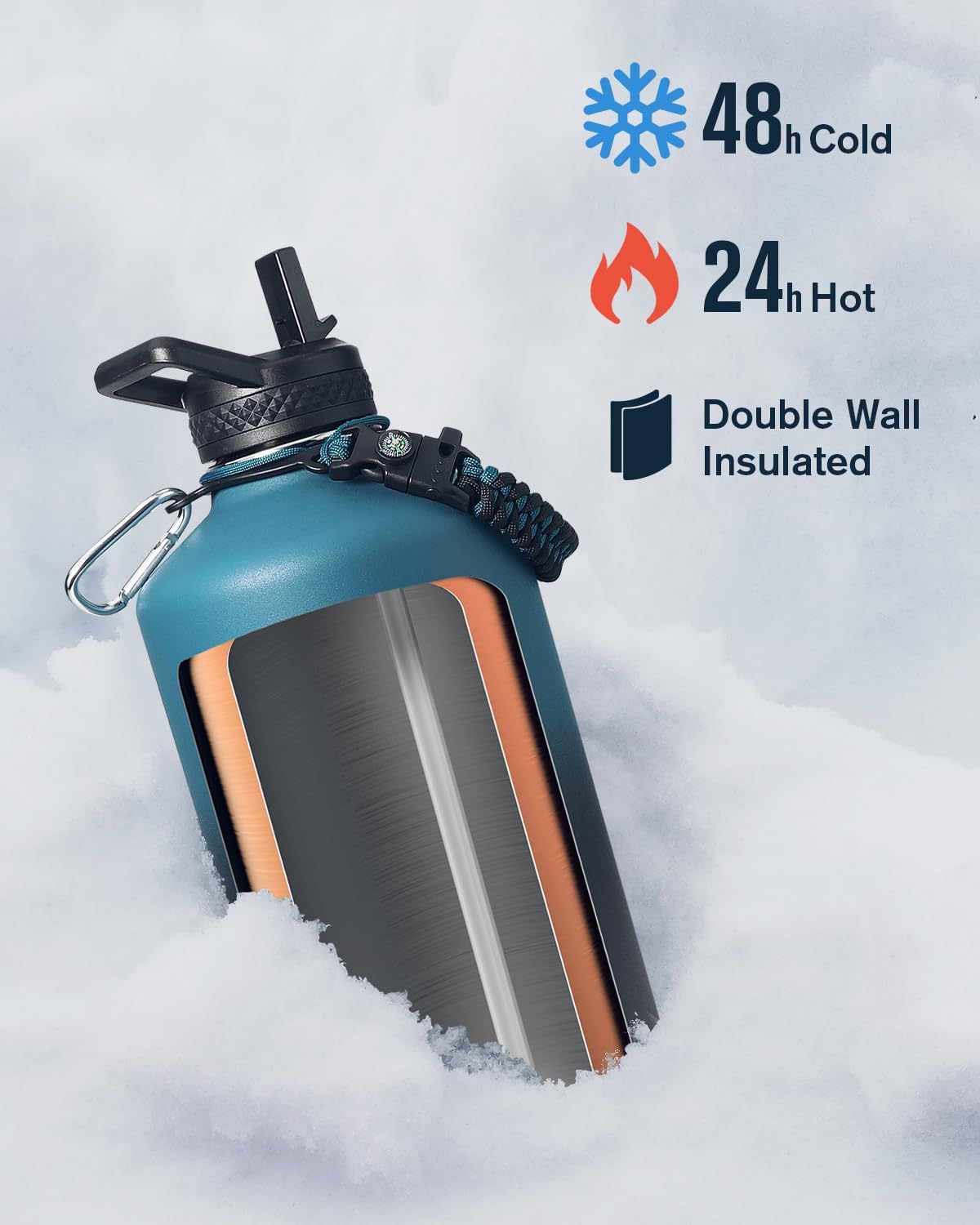 【4 in 1Paracord Handle】This gallon water jug has sturdy and military grade paracord with a mini compass and whistle making this sports bottle a must-have survival kit. It also adds a touch of outdoorsy vibe for gym and everyday use.